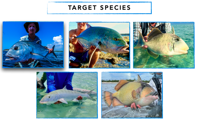 - Target Species: Giant Trevalley, Bluefin Trevally, Yellowmargin Triggerfish, Moustache Triggerfish, Bonefish, Napoleon Wrasse, and more